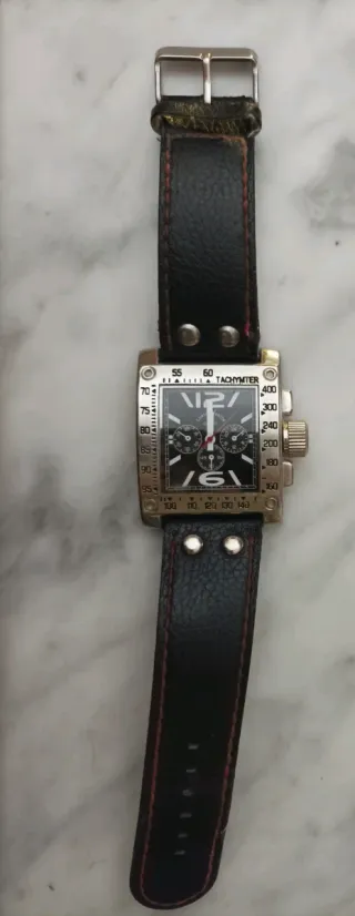 RELOJ DE HOMBRE DE VESTIR - Bisel con escala taquimétrica. - Tres subesferas en la esfera. - Correa de cuero negra con pespuntes rojos. - Cierre de hebilla metálica. SOLO EN LA PROVINCIA DE SALAMANCA CONTACTAR POR EL CHAT DE LA APLICACIÓN (WALLAPOP)