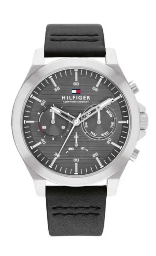 Reloj Tommy Hilfiger Lance Gentle con correa de cuero. Caja de 46 mm.