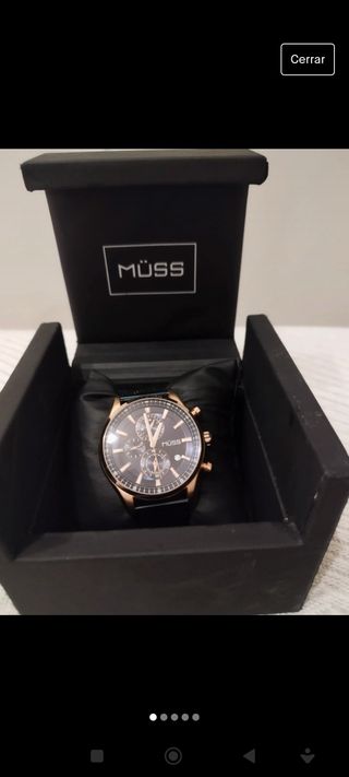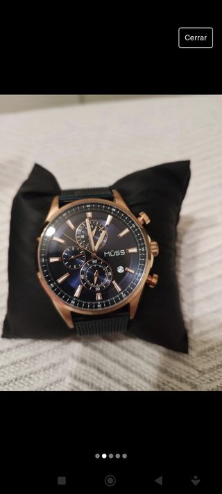 Reloj caballero MUSs con tres esferas ,azul y dorado. Correa metálica azul En su caja original Water resistente 10 ATM