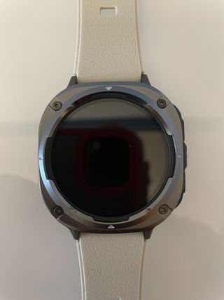 Reloj xiami 2 La foto engaña, perdió bastante el brillo y en exterior no se ve. La correa y el cargador en perfecto estado, ideal para reca.bio. El reloj funciona con el móvil en perfecto estado. Mide los pasos y el sueño, llamadas, mensajes, alarmas, bateria etc pero tiene ese pequeño defecto (no se ve)