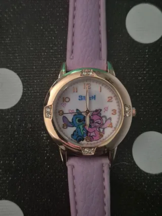 Precioso reloj con los personajes de Disney, Stitch y Ángel. La correa es de un suave color morado. - Diseño con Stitch y Ángel. - Correa de color morado.