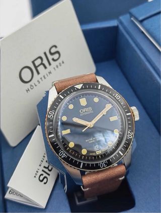 Reloj Oris Divers Sixty-Five con caja de 40mm. Un diseño clásico y deportivo. - Esfera azul. - Correa de piel marrón. - Resistencia al agua 10 BAR / 100M.