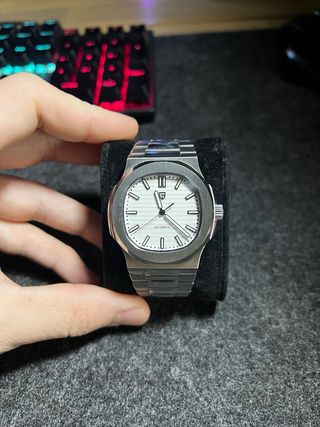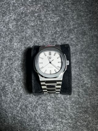 Reloj de pulsera Pagani Design modelo PD-1728. -Mecánico automático. - Esfera blanca con detalles plateados. - Correa de eslabones plateada. - Totalmente nuevo, sin usar.