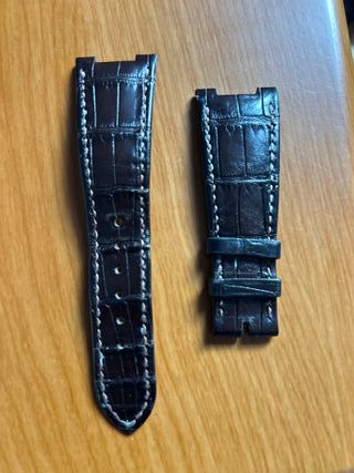 Correa de repuesto para Audemars Piguet Royal Oak Offshore. - Material: Piel. - Color: Negro y marrón. - Cierre: Hebilla. - Grabado interior: Boutique main y AUDEMARS PIGUET. - Medida: 28 mm. X 20mm