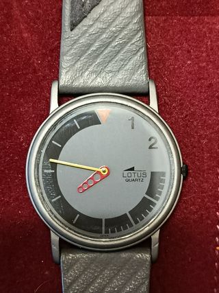 Reloj Lotus de estilo vintage con una combinación de colores gris y rojo. - Nuevo con etiqueta. - Tamaño cadete - El reloj está tal cual se ve en la foto. - Correa gris.