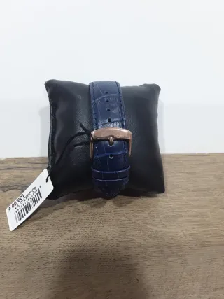 Elegante reloj Fossil para mujer con detalles en dorado y correa azul. - Esfera blanca con detalles plateados. - Correa de piel azul. - Bisel y detalles en tono dorado. SI LE INTERESAN LOS RELOJES FOSSIL SE PUEDE HACER UN PACK CON VARIAS UNIDADES CON AJUSTE DE PRECIO.