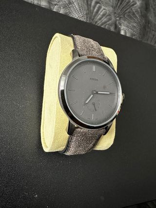 Elegante reloj Fossil con una esfera oscura y correa texturizada. - Diseño moderno y minimalista. - Correa con acabado texturizado. - Caja de reloj en tono oscuro.