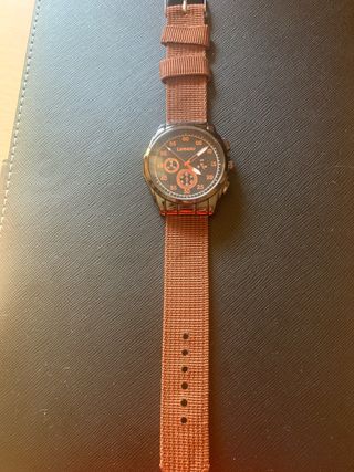 Hay que cambiarle la pila y la correa lo demas esta perfecto,color cobre y marron