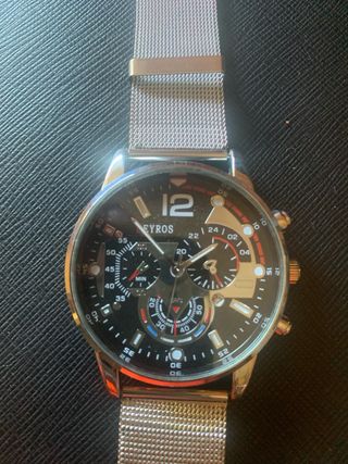 Elegante reloj con un diseño sofisticado. - Esfera con detalles en dorado. - Correa de metal plateada. - Incluye manual de usuario y herramienta para ajustar la correa. tengo 2 más , por separado 30€ cada uno. El pack de 3 cada uno a 25€