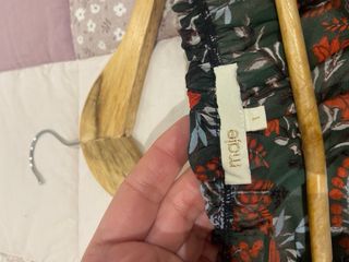 Vestido de la marca Maje en talla S. Presenta un diseño con estampado floral en tonos oscuros y vibrantes. - Mangas largas abullonadas. - Cintura elástica fruncida. - Falda con volantes en cascada.