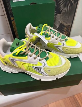 Zapatillas deportivas Lacoste con un diseño moderno y llamativo. - Combinación de colores verde y amarillo. - Talla 43. Nuevas a estrenar en su caja original✨
