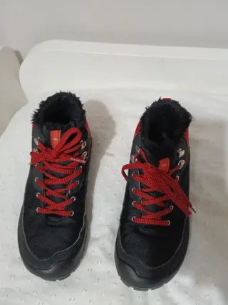 Botas de nieve impermeables con un diseño moderno y funcional. - Cierre con cordones rojos. - Forro interior cálido. - Suela de goma resistente.