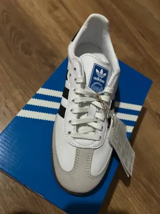 Zapatillas Adidas Samba OG en color blanco nube y negro. - Diseño clásico con las tres rayas. - Puntera reforzada de ante. - Etiqueta Adidas en la lengüeta.