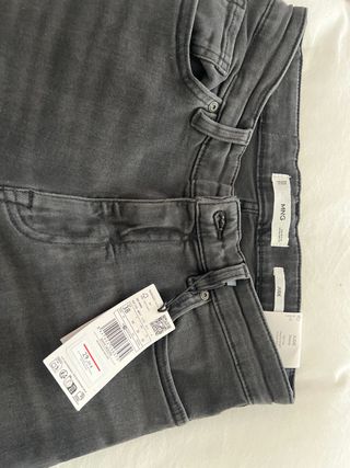 Pantalón vaquero de la marca Mango en color gris. Modelo Jude. - Talla 38. - Corte slim. - Cierre con cremallera y botón. - Bolsillos delanteros y traseros. Se ha pasado el plazo de devolucion