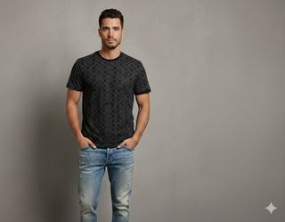 Camiseta de manga corta con un diseño de monograma. - Cuello redondo. - Tejido con estampado. - Corte clásico.