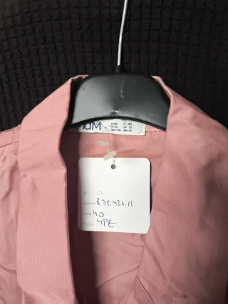 Blusa rosa con un diseño de volantes en las mangas. Nueva, a estrenar. 86% lino, resto poliéster. Con forro. Precio original 75 e. Arrugada de estar guardada, pero tiene fácil solución.