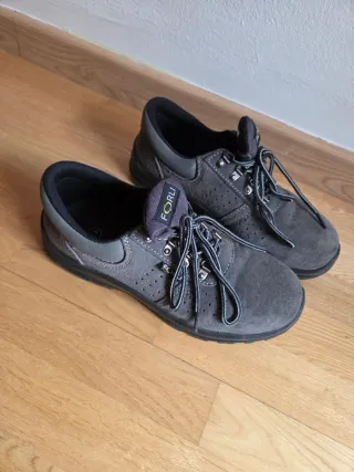 Botas de seguridad de color gris, ideales para proteger tus pies en el trabajo. - Cierre con cordones. - Diseño con perforaciones. - Marca FORLI visible en la lengüeta. - Talla 43. Tienen poco uso.