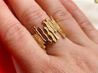 Anillo con un diseño moderno y elegante, bañado en oro de 18k ⭐ 📏 Talla: ajustable 📬 Envío rápido y protegido