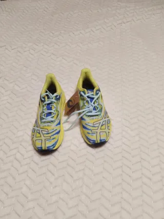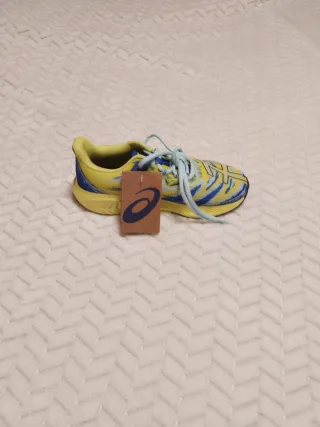 Zapatillas deportivas ASICS Gel-Noosa Tri 15 GS en llamativos tonos amarillos y azules. - Diseño deportivo. - Cordones de ajuste.