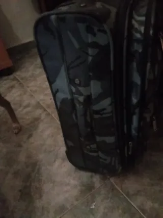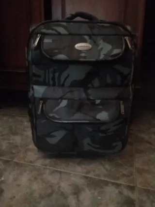 Maleta de cabina con un diseño moderno y práctico, en buen estado - Estampado de camuflaje en tonos azules y multicolores. - Compartimentos exteriores con cremallera. - Interior con dos compartimentos - Asa superior para facilitar el transporte. - Dispone de "fuelle" para darle más capacidad si es necesario Usada en 2 viajes