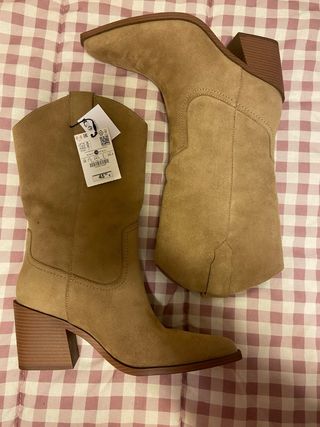 Botas estilo cowboy de Zara. - Material de ante. - Tacón grueso. - Punta afilada.