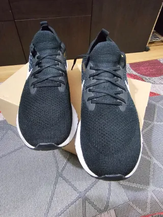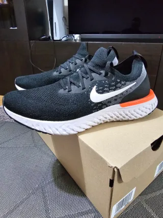 Zapatillas Nike Epic React Flyknit en color negro con detalles en naranja. Talla 44 Con uso pero muy buen estado
