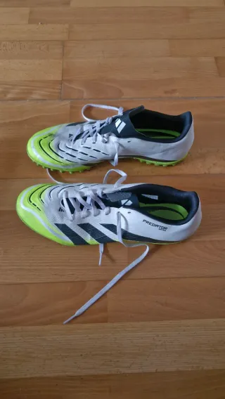 Botas de fútbol Adidas Predator. - Fabricadas en Indonesia. - Talla 45 (280mm). - Diseño con detalles en verde neón. - Se han utilizado en 2 partidos.