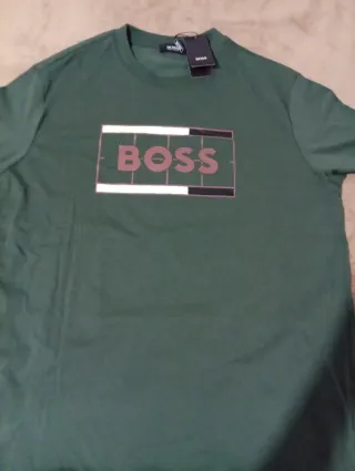 Camiseta de la marca BOSS en color verde. Presenta un diseño moderno con el logo de la marca. - Logo BOSS estampado en el frontal. - Cuello redondo. - Manga corta. Talla reducida= S