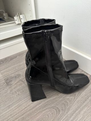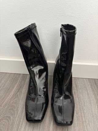 Botas de charol con tacón. - Diseño moderno y elegante. - Cierre de cremallera lateral. - Punta cuadrada.
