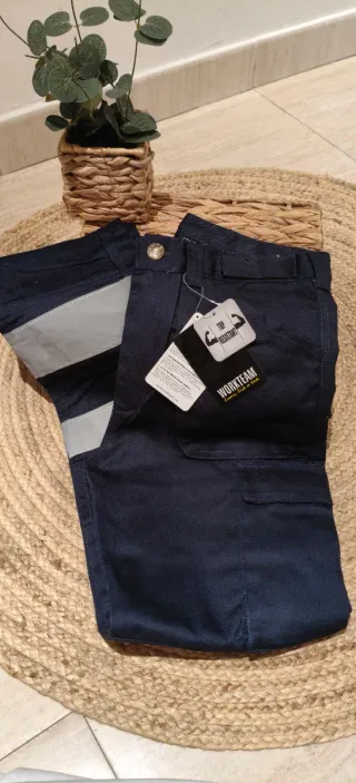 Pantalón de trabajo Workteam. Dos unidades de la talla 40 Cada pantalón 10€. - Detalles reflectantes en las piernas. - Bolsillos de carga laterales. - Cierre de botón y cremallera.