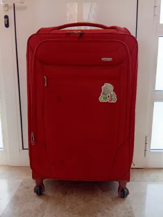 Maleta grande de la marca Samsonite en color rojo. Cuenta con un diseño espacioso y práctico para tus viajes. Es muy ligera. Medidas: 85x50x30cm - Ruedas para facilitar el transporte. - Asa extensible. - Bolsillos frontales con cremallera. -Cremallera con fuelle para ampliar capacidad. - Por fuera está un poco desgastada pero por dentro en perfecto estado.