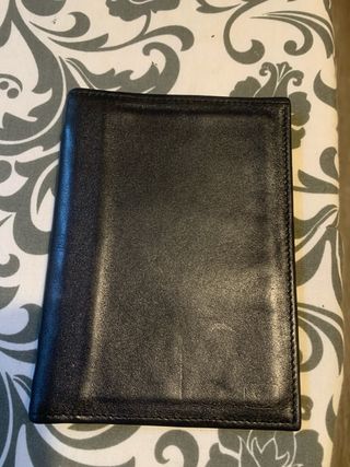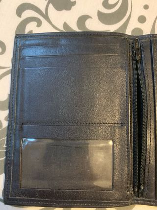 Cartera y tarjetero de cuero negro. Tiene plástico extendible, tipo antiguo carnet de conducir. Sin usar. Ver compartimentos y medidas en fotos - Diseño elegante y funcional. - Múltiples compartimentos para tarjetas.
