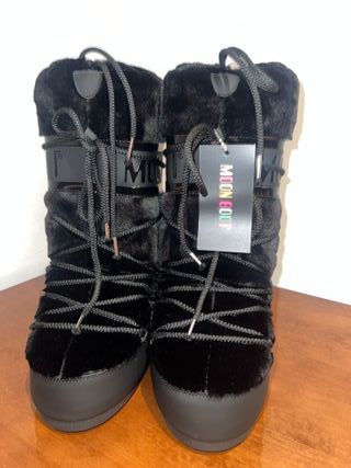 Botas de invierno Moon Boot en color negro. Perfectas para mantener los pies calientes y secos. - Diseño acolchado con pelo sintético. - Cierre con cordones. - Suela gruesa y antideslizante.