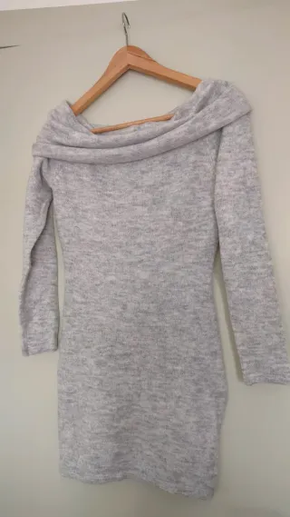 Vestido de punto con un favorecedor diseño cruzado y manga larga. Su tejido acanalado le da un toque moderno y cómodo. Marca talla 36 pero vale para una 38 también.