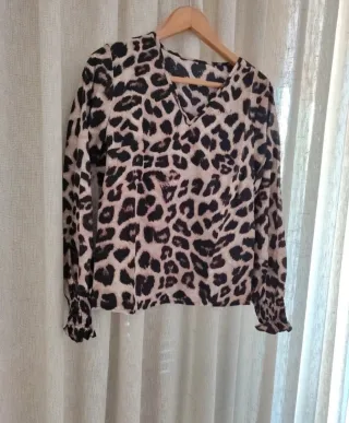 Blusa con estampado de leopardo, ideal para un look moderno. - Diseño de manga larga. - Cuello en V. - Puños elásticos.