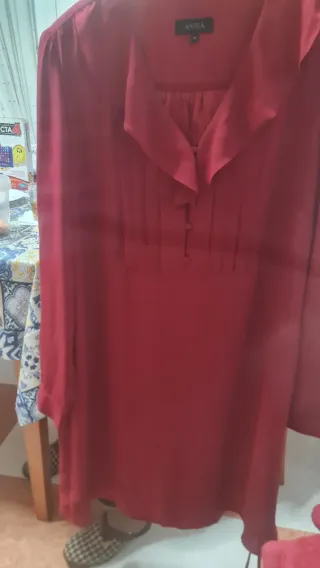 Vestido de la marca ANTEA en color rojo. - Diseño con cuello camisero y detalles de plisados. - Cierre con botones. - Manga larga.