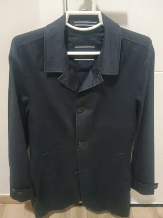 Chaqueta de hombre de la marca Tommy Hilfiger. Talla m. Mide 55 cm de axila a axila y 90 cm de largo. - Color azul marino. - Cierre de botones. - Bolsillos frontales. - Puños ajustables con botón.