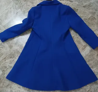 Abrigo elegante de color azul. - Diseño de solapa. - Cierre de dos botones. - Acampanado, largo 90 cm