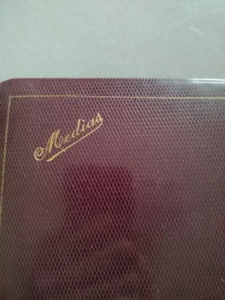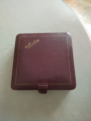 CAJA MEDIAS CUERO GRANATE ORO VINTAGE Forrada por dentro con unas manchitas. Medidas 16x16x3 cm