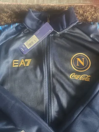 Conjunto deportivo del Napoli. - Chaqueta con cremallera completa. - Pantalón a juego. - Diseño con detalles en azul y dorado. - Talla L - Nuevo a estrenar