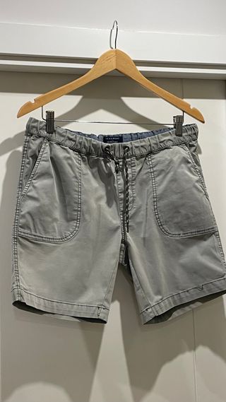 Bermuda de la marca Scalpers en color aguamarina. - Cintura elástica con cordón. - Bolsillos delanteros laterales. - Bolsillos traseros. Detalle de calavera y tibias sobre el bolsillo derecho. - Costuras decorativas - Cintura 40cm, largo 40cm, tiro 18cm. - Precio no negociable.