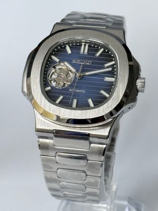 Reloj Seiko MOD tipo Nautilus Open Heart Azul