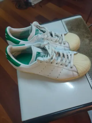 Zapatillas Adidas Superstar con detalles en verde y blanco. Un clásico para tu día a día. - Diseño icónico. - Materiales de calidad.