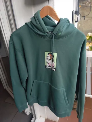 Sudadera con capucha de la marca Volcom en color verde. Presenta un diseño gráfico en la parte frontal. - Capucha con cordones ajustables. - Bolsillo tipo canguro. - Estampado frontal con ilustración y logo.