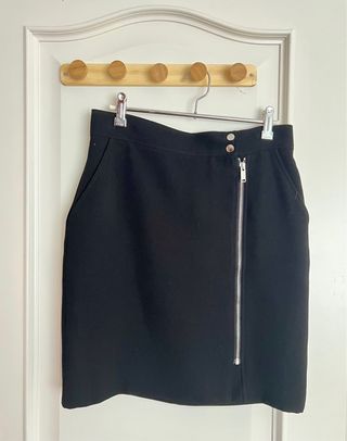 Falda de la marca IKKS en color negro. Presenta un diseño moderno con una cremallera plateada en el lateral. - Cremallera metálica. - Bolsillos laterales.