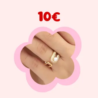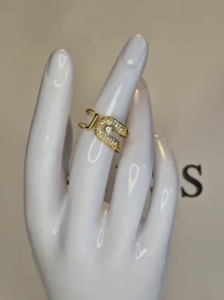 Anillo con un diseño elegante y moderno. - Detalles de brillos. - Perla central.