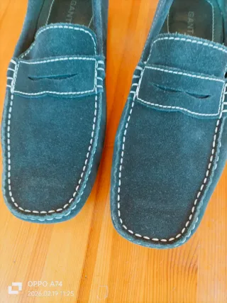 Mocasines de ante azul de la marca Gant. - Fabricados en piel. - Diseño clásico. - Costuras decorativas.