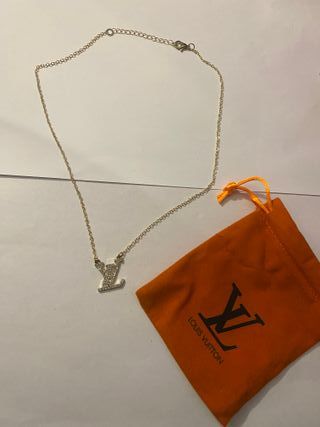 Elegante collar con el icónico logo L adornado con brillantes. Un accesorio que aporta un toque de lujo. - Diseño del logo L con incrustaciones. - Cadena dorada.
