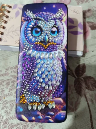 Estuche para gafas decorado con la técnica de punto de diamante, representando al búho de la suerte. Un diseño único y brillante. Totalmente nuevo. - Decoración con piedras de diamante de imitación. - Diseño de búho de la suerte. - Acabado artesanal - Exterior de cuero sintético, forrado por dentro Puse una marca aleatoria ya que sino no podía poner el anuncio