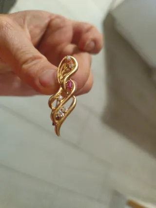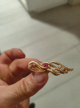 Broche antiguo oro con rubí y diamantes